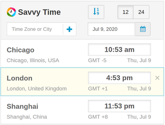 Конвертер часовых поясов - Savvy Time это мощный инструмент, разработанный для разработчиков и IT-профессионалов. Это приложение на основе подписки работает безупречно на платформе Firefox, позволяя пользователям конвертировать время между несколькими местоположениями по всему миру. С возможностью обрабатывать более 100,000 городов и примерно 300 часовых поясов, оно предоставляет комплексное решение для всех, кто нуждается в координации между различными регионами.